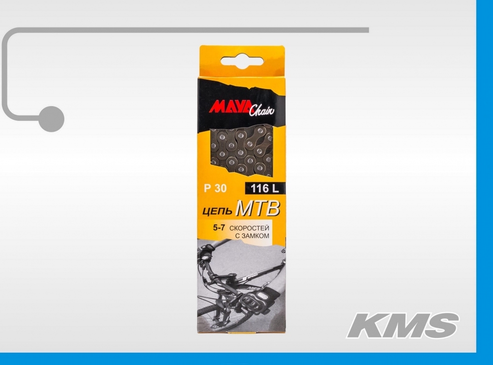 Цепь "MAYA" Р30, 116зв., 1/2 X 3/32, для спортивного велосипеда 5-7ск., совместимость с цепями "КМС" Z33, с замком,завод "MAYA", инд. упаковка, новый русский дизайн.