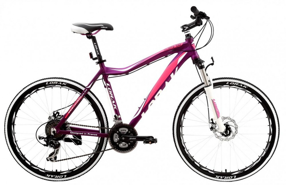 Lorak Glory 100 - довольно легкий велосипед. Простой в обслуживании, при этом имеет рельефную раму, надежные дисковые тормоза. Яркий дизайн, покрышки с белой полосой, мягкое сиденье, а так же легкую алюминиевая вилка с ходом 80 мм. Все, что нужно девушке для катания по городу и неровным дорогам.