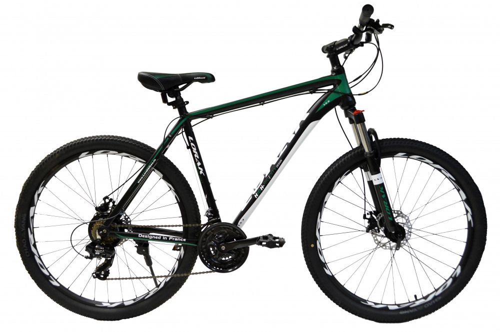LORAK LX 3 – начальная модель с колесами 27,5 дюймов. Имеет крепкую алюминиевую раму, вилку с ходом 100 мм, функцией блокировки и регулировки. Каретка картридж, втулки на промах, двойные обода и дисковые механические тормоза.