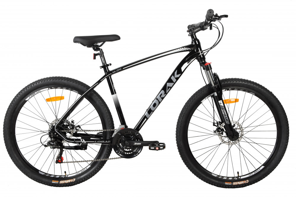 Lorak M-04 – универсальный велосипед, который подходит для мужчин, женщин, колеса 27,5 дюймов. Удобные рычажковые переключатели, надежные тормоза. Почти все компоненты велосипеда выполнены из алюминия: вынос, руль, шатуны, штырь, втулки, рама, обода. Компоненты от ведущего производителя Shimano. Втулки на промах или на насыпи высокого качества, задние звезды кассета.