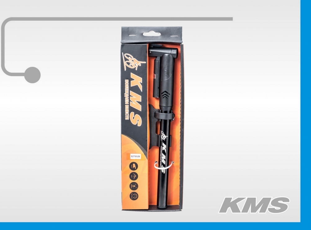 Насос "KMS", горный, мини, алюминиевый, цвет черный, ручной, с манометром, с выдвижным шлангом, AV/FV, с зажимом, с креплением на раму под бутылку, инд. упак.