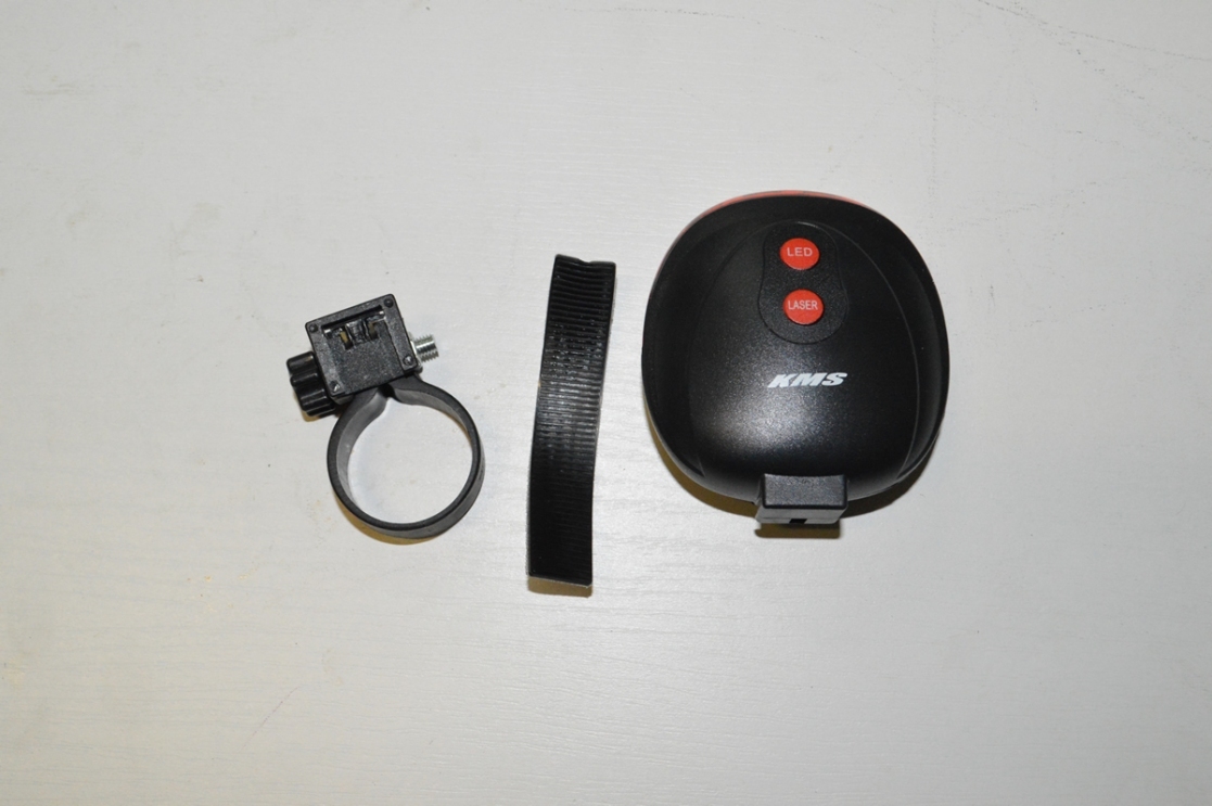 Стоп задний, плоский, красный (5 диодов + 2 лазера), 7 режимов работы лазера, 2 режима работы стопа, инд. упак., бренд "KMS", New model